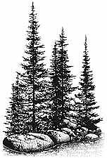 A filler design. A solo pine to add to foregrounds and backgrounds. The image was designed to be used in a way where one could achieve a nice solid shape w/o covering, completely, what's in the backgroud --if it's used as foreground. Branches were drawn in layers to achieve depth within the silhouette of the design itself. |