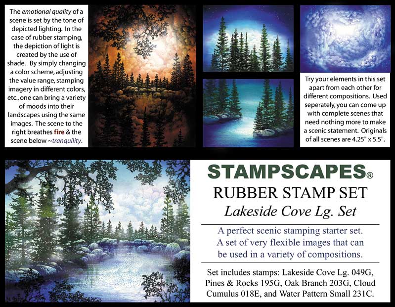 LAKESIDE COVE LG 049G, CLOUD CUMULUS 018E, WATER PATTERN SM 231C, PINES AND ROCKS 195G, OAK BRANCH 203G. A nice set with some very universal