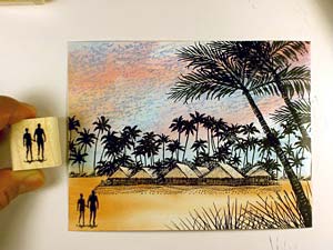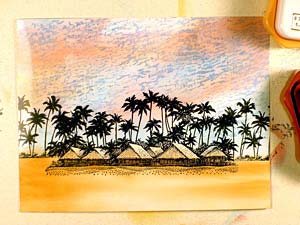 Ranger Sea Shells "Peach Bellini" was added to the sand and bungalows.