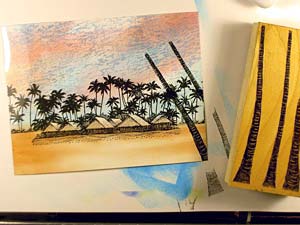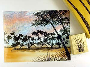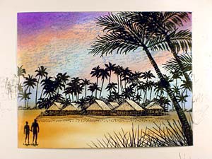 Palms with Bungalows was stamped in black.