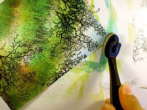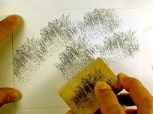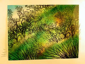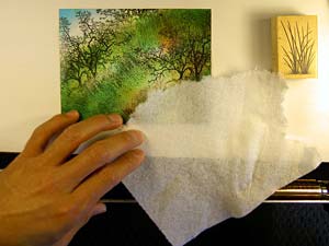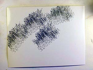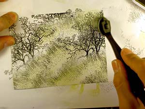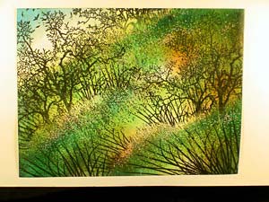The mask was raised to another level of the scene and more impressions with the Reeds were made. These impressions add texture and depth and crisp imagery into an otherwise amorphous field of tone.